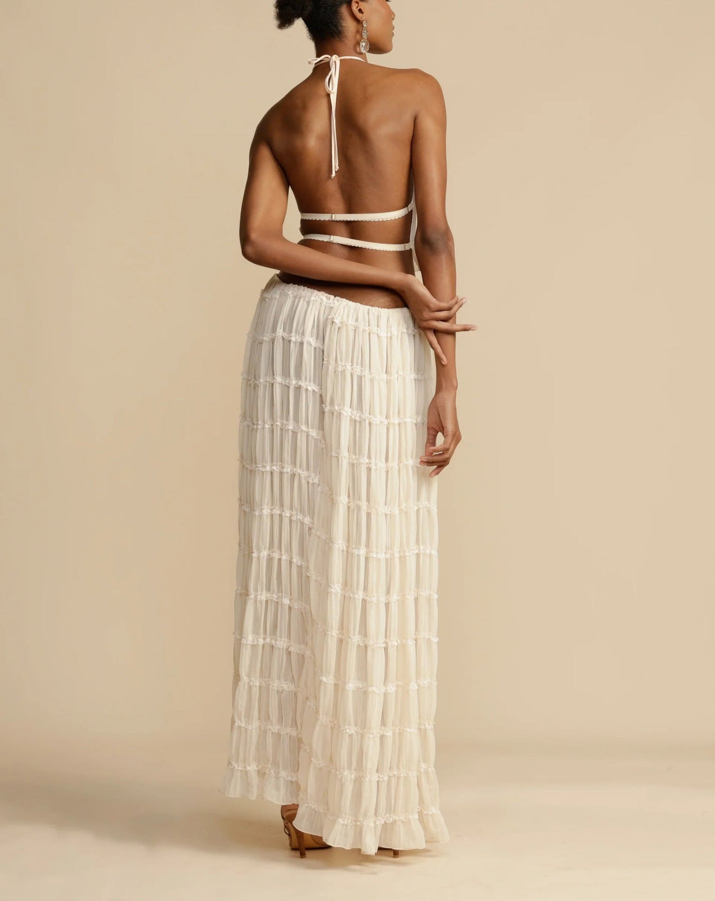 Channel cool sophistication with the Maila Two-Piece Halter Set—a bold yet refined combo designed to turn heads with ease. Featuring a sleek halter neckline and tailored high-waisted pants, this duo delivers clean lines and chic structure. Soft, breathable fabric keeps you looking sharp and feeling great from day to night. Whether for travel, brunch, or a rooftop evening, Maila is your answer to instant style with confidence.